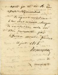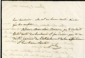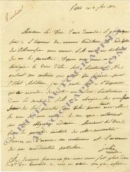 CLARY JulieLettre autographe signée, adressée à son neveu, François Clary. Florence, 5 janvier 1841 ; 1 page 1/2 in-8°. Elle le remercie des vux quil lui a envoyés. « Jai fait part à ton infortunée tante de Villeneuve, de ce que tu me dis pour elle, et crois que bien accablée par sa trop...