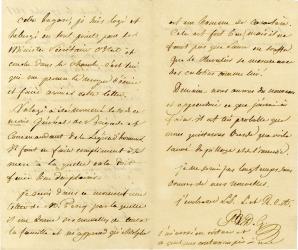 DESGENETTES Nicolas René Dufriche, baronLettre autographe signée, adressée à une femme. Dresde, 27 août 1813 ; 3 page 1/4 in-8°. « Je suis arrivé hier dans cette capitale par un temps détestable qui dure encore. À l’entrée de Dresde, il a fallu passer par un chemin qui était sous le feu de l’ennemi qui avec cent mille...