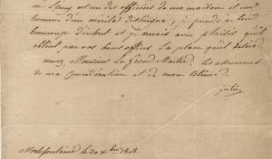 DUPUYTREN GuillaumePièce autographe signée. 14 juillet 1814 ; 2 pages in-4°. Il s’agit d’un bilan de santé du vieux chevalier de Boufflers qui devait décéder l’année suivante. « M. de Boufflers n’a […] rien qui puisse lui faire craindre l’une ou l’autre de ces maladies. Tout ce qu’on...