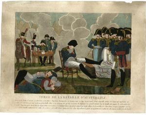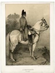 NAPOLÉON Ier.Combat de Champ-Aubert (10 février 1814). Gravure du XIXe siècle ; 185 X 145 mm sur un feuillet de 450 X 310 mm, rousseurs dans les marges. Gravée par Pourvoyeur d’après une peinture de Ch. Langlois. Gravure en noir et blanc tirée de la Galerie Historique de Versailles.