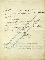 SÉGUR Philippe-Paul, comte deLettre autographe signée. 29 décembre 1834 ; 1 page in-4°. Lettre relative à son livre « Histoire de Charles VIII ». « Je vous remercier mille fois de cette marque d'une obligeance à laquelle j'attache le plus grand prix. Ce livre est le fruit de quatre ans entiers d'un travail assidu. J'y...