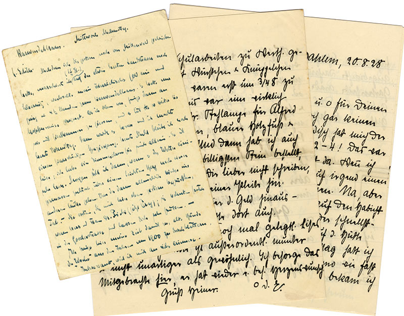 Carte autographe signéeCarte autographe signée, adressée à sa femme Edith à Berlin. 1 page in-12, en allemand, adresse timbrée au dos.On joint deux lettres très longues de son épouse (1928 ; 12 pages in-8°).