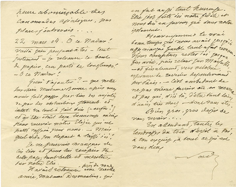 Lettre autographe signéeLettre autographe signée, adressée à un ami. Cannes, 17 février-22 mars 1904 ; 4 pages in-8°. Très belle lettre : « L’adorable adoré parti, votre peine à tous, la tienne, — la permanente inquiétude, quand ce n’est pas...