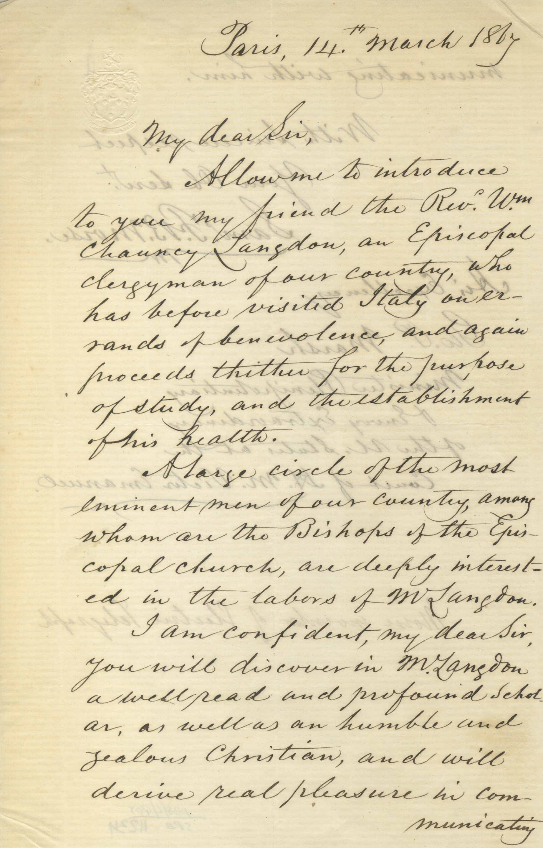Lettre autographe signéeLettre autographe signée adressée George P. Marsh alors dans son poste de minisitre plénipotentiaire et envoyé extraordianaire des Etats-Unis en Italie. Paris, 14 mars 1967 ; 2 pages in-8°. ...