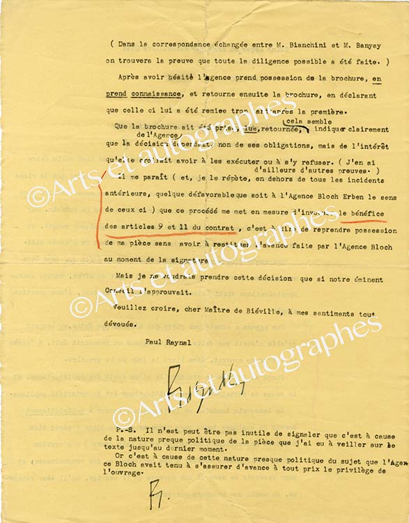 Ensemble de 25 lettres signées adressés à M. de BiévilleEnsemble de 25 lettres signées adressés à M. de Biéville. Saint-Léger-en-Bray (Oise), 1935-1945; formats divers (in-4° ou in-8°). Très intéressante correspondance relative à ses pièces, à leurs représentations et à leur...