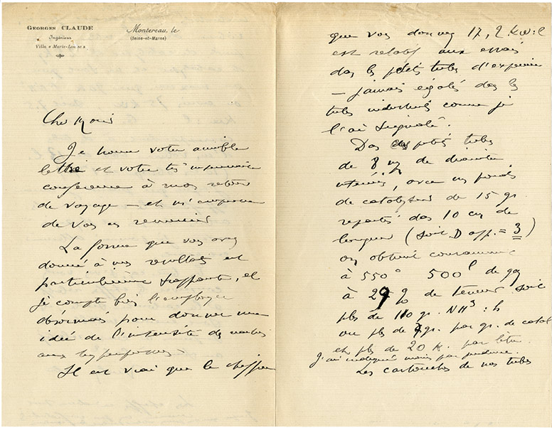 Lettre autographe signéeLettre autographe signée. Montereau, sans date ; 2 pages in-8° sur papier à son adresse à Montereau. Très intéressante et rare lettre scientifique relative à la fabrication de l'ammoniac. Dans cette lettre vraisemblablement datable...
