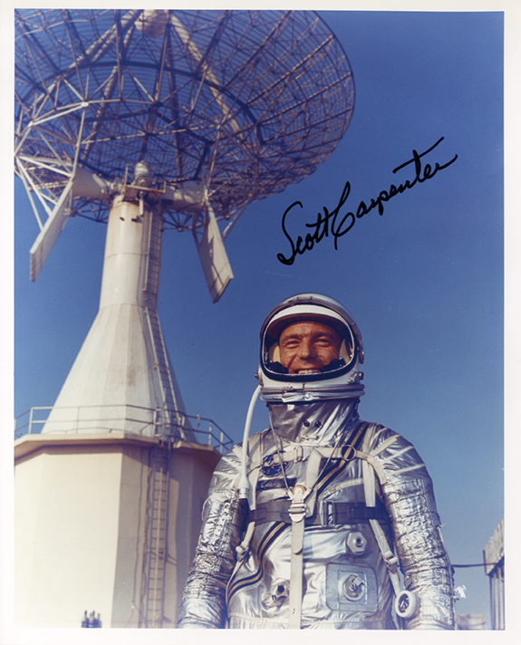 Il est le 6e homme à être allé dans l’espace. Nous avons une photographie signée par lui. 253 X 203 mm. Photographie le représentant en habit spatial.