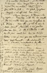 MASSENET JulesLettre autographe signée. Paris « 11 janvier » ; 2 pages -in-8. Jules Massenet nous dépeint une rupture amoureuse avec une femme italienne qui l’a beaucoup marqué et se désepère de sa solitude. « La lettre qui accompagne celle-ci a été écrite mon bon Michel, son les premières impressions de mon arrivé. Depuis ce temps que d’évènements, que d’émotions, que de joie inouï, que de déception à se briser la tête contre le sol, pavé de Paris! Tu, tu me sais installé très gentiment dans une chambrette rue [Toitbout] 14, je vis seule. Mes meubles sont propres, gais. […] il fait assez beau à Paris - cette nuit a été italienne!… mais mon cœur est bien triste mon bon ami. […] aujourd’hui je ne dois revenir le moins souvent chez elle - plus de musique le soir, plus de baiser… il le faut - c’est notre politique… Qu’elle est cruelle!… Je dine pourtant ce soir chez elle avec […lmann] demain je l’a verrais dans le monde. Elle parle souvent de toi mon bon Michel. Je passe des journées affreuses, seul dans ma chambre où seul sur les Grands Boulevards» Il donne ensuite des nouvelles de sa musique : « Je suis accablée de commande comme compositeurs - j’ai écrit aujourd’hui une mélodie « chant d’Ariel » pour éditer de suite - ma grande symphonie [ Souplia ] est affichée à Paris. À l’opéra comique MR…. À bon espoir- mon trio a été très bien accueilli par mon maître ainsi que ma Symphonie de Venise. » Il écrit ensuite à minuit pour donner ses impressions après le repas chez son ancienne maîtresse. 1 Le chant d’Ariel est une mélodie tirée de l’opéra Le Mage composé entre 1889 et 1890.