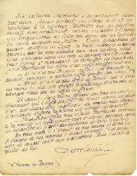 LOUS Pierre (Pierre Louis, dit)Lettre autographe signée, adressée à Georges Louis. Sans date ; 1 page in-12.« Elles se sont vengées du tour que je leur ai joué, en me remettant ce soir un compte où il reste dû 297f.65. il est vrai que je leur ai très peu donné depuis le mois de septembre ; mais cette note tombe mal ... Jai la presque certitude de trouver dans huit jours, juste de quoi payer mon terme qui est encore en suspens. [ ] Mais les 300 f. de la maison, je ne vois aucun moyen de me les procurer actuellement. Peux-tu me les avancer ? ».