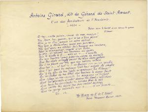 Poème autographe. (Sans lieu ni date), 1 page in-4 oblongue.