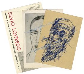 LOFFREDO SilvioCarte autographe signée, avec dessin, adressée au médecin et écrivain Roland Cailleux [Paris, 1908 - Antibes, 1980]. [Cachet de la poste : 20 novembre 1962] ; 140 x 100 mm. Un portrait de Roland Cailleux, signé et daté, figure au dos, au stylo bille. Il annonce le vernissage d’une exposition à la galerie Domec. « Vers 6 heures Rue St Placide 33, inauguration de 5 peintres Florentins (et moi même) si par hasard... en tous cas, amitiés, Loffredo. »On joint une carte adressée à R. Cailleux de l’exposition de Loffredo à Philadelphie (États-Unis) en 1958 avec l’adresse écrite par Loffredo.On joint une carte de l’exposition Loffredo à Firenze en 1965 dont l’œuvre reproduite est un portrait de Roland Cailleux.