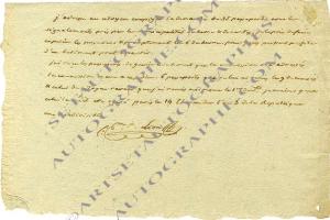 LION Pierre-JosephPièce autographe signée. Paris, 5 thermidor an III [23 juillet 1795] ; 1 page in-12 oblongue. Attestation comme député de la Guadeloupe que « la citoyenne Courbet est déportée de la Guadeloupe et qu’il n’y a point d’obstacle à ce qu’il lui soit délivré un passeport ».