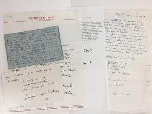 LITTÉRATURE.Ensemble de 30 lettres adressées à Monsieur ou Madame Guitard : Robert Aron (2), François-Régis Bastide (3) Robert Boisnier, Jacques Benoist-Méchin (3), Jean Gaulmier, Mlle Delamain, André Maurois, Maurice Delamain, J. Delamain (2), Anna Maria Righi (4), Pol Vandromme (2), Jean Gaulmier, Jean-Jacques Gautier, Jean-Pierre Peroncel-Hugoz (3, intéressantes), André Bay, Gérard Bonal, Berthe Bovy, etc.