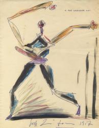 LifarDessin en couleurs autographe signé. 1957, sur une feuille 20,5 x 26,5 avec adresse : 6 rue Lavoisier,VIIIe. Magnifique dessin à l’encre et aquarelle représentant une danseuse en “ tutu ” signé en bas de page.