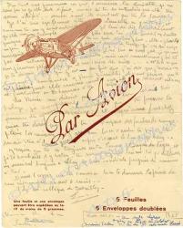 LETTRE DE SOLDAT.Lettre de soldat. 6 juillet 1938; 2 pages in-4°, au crayon, sur un papier figurant un avion.Lettre d’un soldat au 9e colonial.