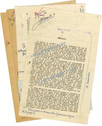 LA VARENDE Jean Mallard, vicomte deÉpreuves corrigées et bon à tirer de la préface qu’il avait rédigée dans l’ouvrage d’Alfred Chaudeurge Au Cri de la Chouette. 1er juin 1959 ; 4 pages in-8°. Une note de l’éditeur, imprimée à la fin de ce texte stipule : « N.D.L.E. — Cette préface est l’un des derniers textes de Jean de La Varende. Il nous en donna le bon à tirer le 1er juin 1959, une semaine avant sa mort. ». Document très rare.