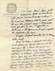 JOINVILLE François dOrléans, prince deLettre autographe signée « Fr. d'Orléans », adressée au baron de Las Cases à Chalonnes sur Loire. Claremont, 14 septembre 1850 ; 4 pages et demie in-8°, enveloppe jointe. Sur la mort de Louis-Philippe le 26 août dernier. « Notre père est mort grandement, sans faiblesse sans ostentation sans récrimination contre personne. Il s'est éteint simplement comme il avait vécu. L'Histoire et ses successeurs vengeront sa mémoire. [...] Politiquement nous sommes aussi bien tristes. L'état du pays est aussi bien triste. Notre pauvre pays se relèvera-t-il du coup qui l'a frappé. Retrouvera-t-il les vertus nécessaires pour s'arrêter sur la pente de la décadence ou est-il destiné à s'accommoder de tout ce qu'il rencontrera sur sa route, s'en rapportant seulement au hasard du soin de guérir ses plaies et d'assurer son avenir »...