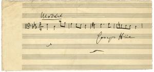 HUE Georges AdolphePortée musicale autographe signée. 2 lignes sur feuillet in-8°.