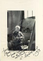 HAMBOURG AndréPhotographie dédicacée à Gérard Leman. 1er janvier 1993 ; 42 x 30 cm.Grande et belle photographie dédicacée représentant Hambourg dans son atelier.
