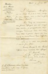 HAMELIN Ferdinand AlphonsePièce signée, adressée à Léonard Victor Joseph Charner. Paris, 9 juin 1855 ; 1 page grand in-4°Nomination au grade de vice-amiral. « L’Empereur, Monsieur, par un décret du 7 de ce mois, rendu sur mon rapport, vous a élevé au grade de Vice-Amiral. Vous devez cet avancement aux services distingués, et principalement au courageux dévouement dont vous avez donné tant de preuves depuis que vous exercez un commandement dans l’Escadre de la Méditerranée ».