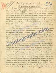 GOYAU GeorgesManuscrit autographe signé. 4 pages in-folio. Manuscrit sans doute publié au Figaro. « La dernière œuvre d’Albert de Mun. [...] Ces prêtres étaient demandés là où l’on mourait ; mais ils sentaient tous que la France attendait d’eux autre chose qu’une aide à donner aux mourants. »