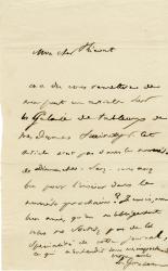 GRANET François-MariusLettre autographe signée. 25 décembre 1836 ; 1 page in-4°. « Je suis bien contrarié de ne pas avoir eu l’honneur de vous voir. Mais j’espère que vous savez monsieur que je suis toujours aux ordres de Madame [...] Lorsque elle désirera de me montrer ses nouveaux ouvrages, ayez la bonté de me faire connaitre et je m’empresserai de me rendre à son atelier. En attendant je vous prie de lui présenter mes respectueux hommages. »