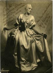 GOYA MonaPhotographie dédicacée. [1947] ; 18 x 13 cm. Photographie du studio Harcourt. Elle est représentée ici dans son rôle de Madame de Pompadour en 1947.
