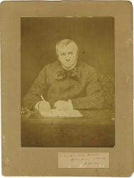 GIRARDIN Émile dePhotographie collée sur un carton, dédicacée à Sarah Bernhardt. 15 mars 1877 ; 24 X 17 cm. « À mon amie Sarah Bernhardt. Affectueux souvenir. 15 mars 1877. E. de Girardin. » La photographie elle-même est signée par Nadar : « Reproduction daprès Carolus Duran. Nadar 1877 ». Peu commun.