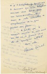 Lettre autographe signée, adressée à Élie Allegret.