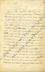 GAY Sophie Michault de Lavalette, MmeLettre autographe signée, adressée à M. Cabot au théâtre de Versailles. Paris, 23 décembre 1842 ; 1 page 1/2 in-8°, adresse sur le 4e feuillet. Sur la direction du théâtre de Versailles. « Je plaide pour M. Robillon contre ceux qui veulent lui ôter la direction, mais ce sont ses administrés qui crient contre lui : ils prétendent n’en pas être payés et leurs vives réclamations étouffent ma faible voix. »