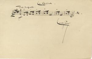 GANNE Louis GustavePortée musicale autographe signée. 1 page in-12 oblongue. Extrait de la Czarine. Pièce attrayante.