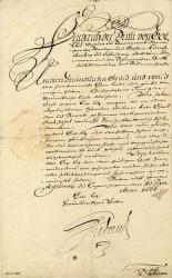 FRÉDÉRIC IVPièce signée. Hafnia, 15 mars 1704 ; 3 pages in-folio, grand sceau aux armes sous papier ; en latin. Sauf-conduit donné pour la navigation entre la Norvège et Amsterdam à Jan Jacobsen Rens et son navire Gylden Haab. Rare.
