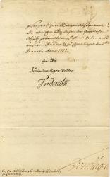 FRÉDÉRIC IIILettre signée. Copenhague, 13 janvier 1766 ; 1 page in-folio ; en allemand. (Ancienne vente Charavay, 24 septembre 1868.) Vœux de nouvel an. Rare.