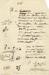 FONVIELLE Wilfrid dePièce autographe. Sans date ; 1 page in-8°. Page de calculs aéronautiques.