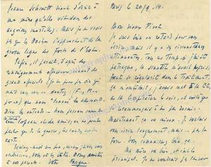 FARGUE Léon-PaulCorrespondance de 13 lettres autographes signées et 1 carte autographe signée, adressées à son ami Léon Pivet. Paris, 1913-1940 ; formats divers. Il est question de son séjour en Suisse (1913), « 1800 mètres d’altitude, silence. Traîneaux, patins. On se casse la gueule. Lumières rousses, presque violettes dans le brouillard », de son exemption du service militaire, de Larbaud et Gallimard. « Je ne crois pas que les boches s’approchent de la grosse ligne des Forts de l’Est. » Il évoque son départ à Saint-Tropez, une inauguration d’une école, un rendez-vous avec Gignoux au Figaro, une invitation à déjeuner et un ennui de santé. « Il y a ce soir un grand dîner chez Adrienne en l’honneur de l’anniversaire de Rinette. Quelques camarades. Viens ! Tout le monde te désire et compte sur toi. » Il décrit enfin la débâcle de 1940 avec les villes dévastées. On joint une note autographe signée avec son adresse au Palace Hôtel.