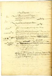 THOU François-Auguste dePièce signée avec nombreuses lignes, corrections et ajouts autographes ; 6 pages in-folio. État des dépenses faites par le R.P. Randon, commis de M. de Champlay.