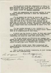 COLETTE (Sidonie Gabrielle Colette, dite)Pièce signée. Paris, 9 octobre 1945 ; 2 pages in-4°. Contrat signé entre Colette et Les éditions Flammarion . « MM. Flammarion & Cie cèdent à Madame Colette le droit de publier, dans la collection de ses oeuvres complètes, à tirage limité, les volumes ci-après appartenant au fonds de leur maison d’édition : Aventures quotidiennes, le Blé en herbe, l’Entrave, l’Envers du music-hall, La Femme cachée, la fin de Chéri, la Naissance du jour et éventuellement la Vagabonde. ». La pièce est également signé par Maurice Goudeket.