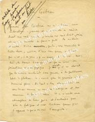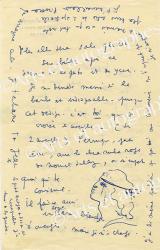 Lettre autographe signée, adressée à Jean Marais, avec un dessin au dos représentant le profil d’Œdipe.
