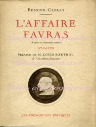 CLERAY Edmond.« L’AFFAIRE FAVRAS », Préface de Louis Barthou. Les Éditions des Portiques, 1932 ; 160 X 210 mm, broché. Exemplaire de presse. Très bel envoi autographe signé, adressé à Pierre de Nolhac. Ex-libris de M. Melchior-Bonnet.