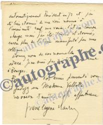 CLAIRIN Pierre EugèneLettre autographe signée, adressée à son ami François Villatte. Loup, 30 décembre 1970 ; 3 pages in-12. Lettre concernant l’illustration d’un livre de Francis Carco. Il évoque un passé douloureux où il fut obligé de quitter « un atelier plein de jeunesse qui entretenait la mienne à ne pas finir trop loin, trop vite». Il a relu le livre de son ami Francis Carco qui n’a pas vieilli. « Corot disait que lorsqu’on marchait derrière quelqu’un, on était toujours à la suite, mais que le moindre accent personnel était sûr de trouver de temps en temps une union avec un inconnu. C’est un très beau livre dédié à Éliane Carco qui vient de mourir. […] Son poème L’Ombre est un des plus beaux de la poésie française contemporaine. » Jolie lettre.