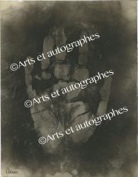 CARCO Francis (François Carcopino-Tusoli, dit)Empreinte de la main gauche de Francis Carco, signée, sur une feuille de papier noircie à la fumée et ayant servi à la réalisation du livre La Main de l’écrivain, publié chez Stock.