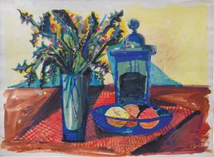 CARELMAN JacquesAquarelle représentant un pot de fleurs. Signée et datée du 30 août 1964 en bas à droite. 50 X 32,5 cm. Provenance : vente de la succession Carelman.