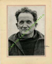 CAILLARD ChristianPhotographie signée, dédicacée au peintre Constant Baruque. Sans date ; 140 x 190 mm, collée sur un support cartonné de 200 x 250 mm. Photographie en noir et blanc, le représentant de face. « Au peintre Constant Baruque, bien amicalement. Christian Caillard. » Au dos, collée au carton, figure une biographie.