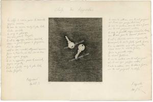BUTOR MichelEnsemble de 3 manuscrits autographes signés entourant des gravures numérotées et signées par Masurovsky, 1973. 2 grandes feuilles 565 X 380 mm avec titre « Clefs des Approches » avec, sur chaque feuille, des poèmes différents. Poèmes intitulés « Clefs des approches », illustrés par Gregory Masurovsky. ILes tirages n’excédaient pas trente exemplaires, précise l’artiste dans une lettre (parue dans Obliques, 1976, p.120). La 3e feuille (400 X 505 mm), légendée « Les mots à la presse », montre une gravure simulant une page d’un journal, remplies et signées par M. Butor.