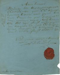 BLÜCHER Gebhard Leberecht,Lettre signée ; 1 page in-4° sur papier bleu, enveloppe, cachets de cire armoriés ; en russe. [1812].