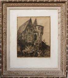BERNARD ÉmileSenlis. Lavis d'encre sur papier, signé en bas à droite et situé en bas à gauche. 28.5 x 23 cm à vue.