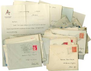 BENOIT PierreImportante correspondance adressée à Paul Brach. Environ 60 lettres, cartes, billets autographes signés et un télégramme. 1927-1939 ; formats divers, 35 enveloppes jointes, quelques mouillures sur certaines lettres. Remerciements, prise de rendez-vous et correspondance sur la vie littéraire et artistique parisienne, avec notamment des allusions à Marcel L’Herbier, Marcel Prévost, Paul Morand, Claude Farrère, etc. L’écrivain félicite Paul Brach pour son second mariage en 1931. Plusieurs lettres sur l’entrée à l’Académie française en 1931 de Pierre Benoit et à propos de son rôle de scénariste en 1936 du film d’Alexis Granowsky, Tarass Boulba. On joint une lettre au réalisateur et un courrier sur la naturalisation de Granowsky.