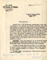 BÉJART MauriceLettre dactylographiée signée. Paris, 12 mai 1954 ; 1 page in-4°. Lettre confirmant son engagement dans « Les Ballets de l’Étoile » au Théâtre de l’Étoile. « pour une durée de quatre semaines prolongeables. Le nombre de représentations par semaine sera de sept ».