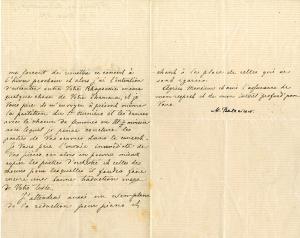 Lettre signée, adressée au compositeur Bourgault-Ducoudray.