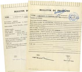 ARRABAL FernandoEnsemble de 2 pièces signées. Bulletins de privilèges signés pour la pièce L’Architecte et l’Empereur d’Assyrie l’un en faveur de M. Domingos Semedo, directeur des Trois Coups de Lausanne et l’autre en faveur de Jean Mottard, président de l’ABSL.